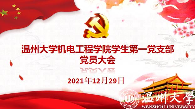2021年12月29日晚,电子竞技博彩 学生第一党支部在6B306智慧教室召开党员大会。本次大会主要讨论是否接收余成玘、金鸿斌、徐湘喻、张越洋、周欲欣、梁嘉伟、林家豪、周洋光8位发展对象为中共预备党员的问题。是否同意陈皓栋、明甜甜、程航宇、席瑜乾4位同志按期转正的问题。支部全体党员参加大会,支部副书记金舒阳同志主持。