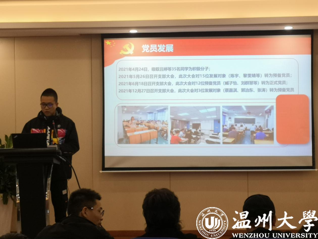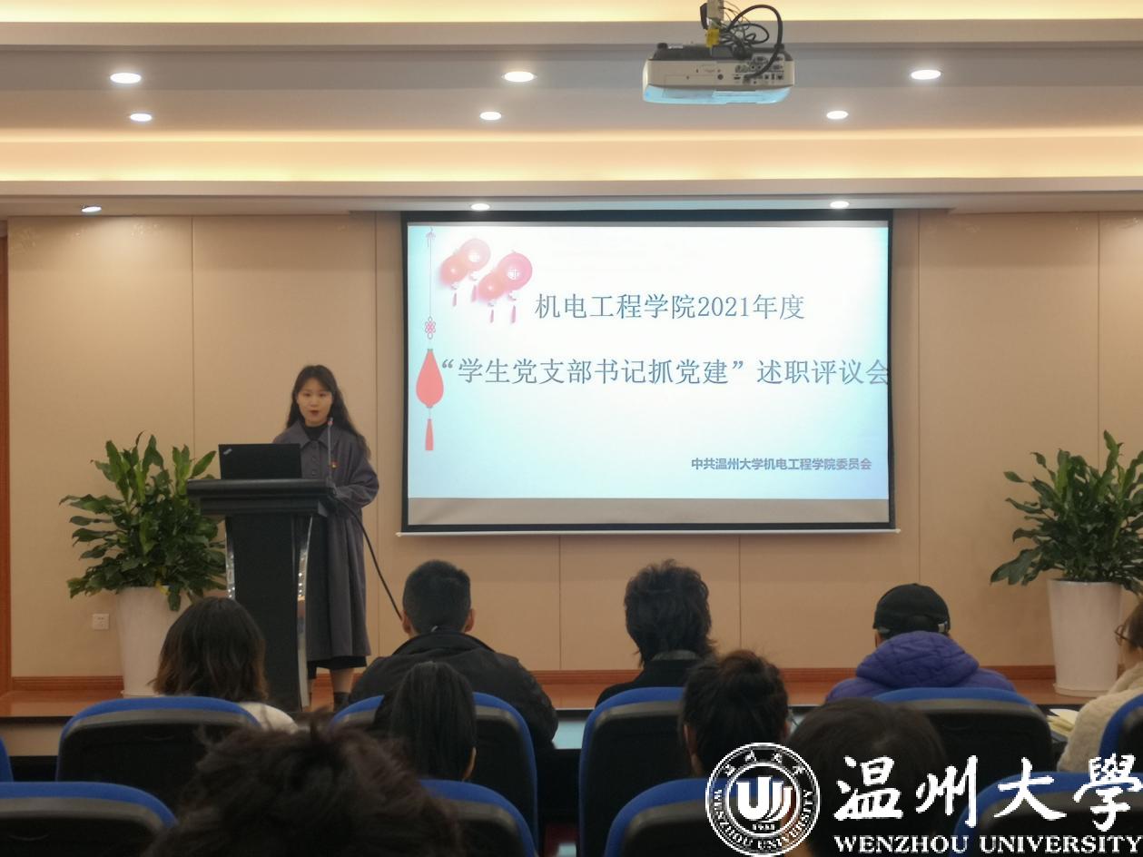 辞旧迎新强党建,抓院促系正党风。为全面梳理盘点本年度电子竞技博彩 学生党建工作,督促学生支部书记聚焦主业主责,深入落实新时代高校党风肃正精神。2022年1月7日,电子竞技博彩 2021年度“学生党支部书记抓党建”述职评议会在6B309报告厅召开。电子竞技博彩 党委副书记黄玮、学工办主任杨奇、各学生支部书记以及党员代表参加本次会议。