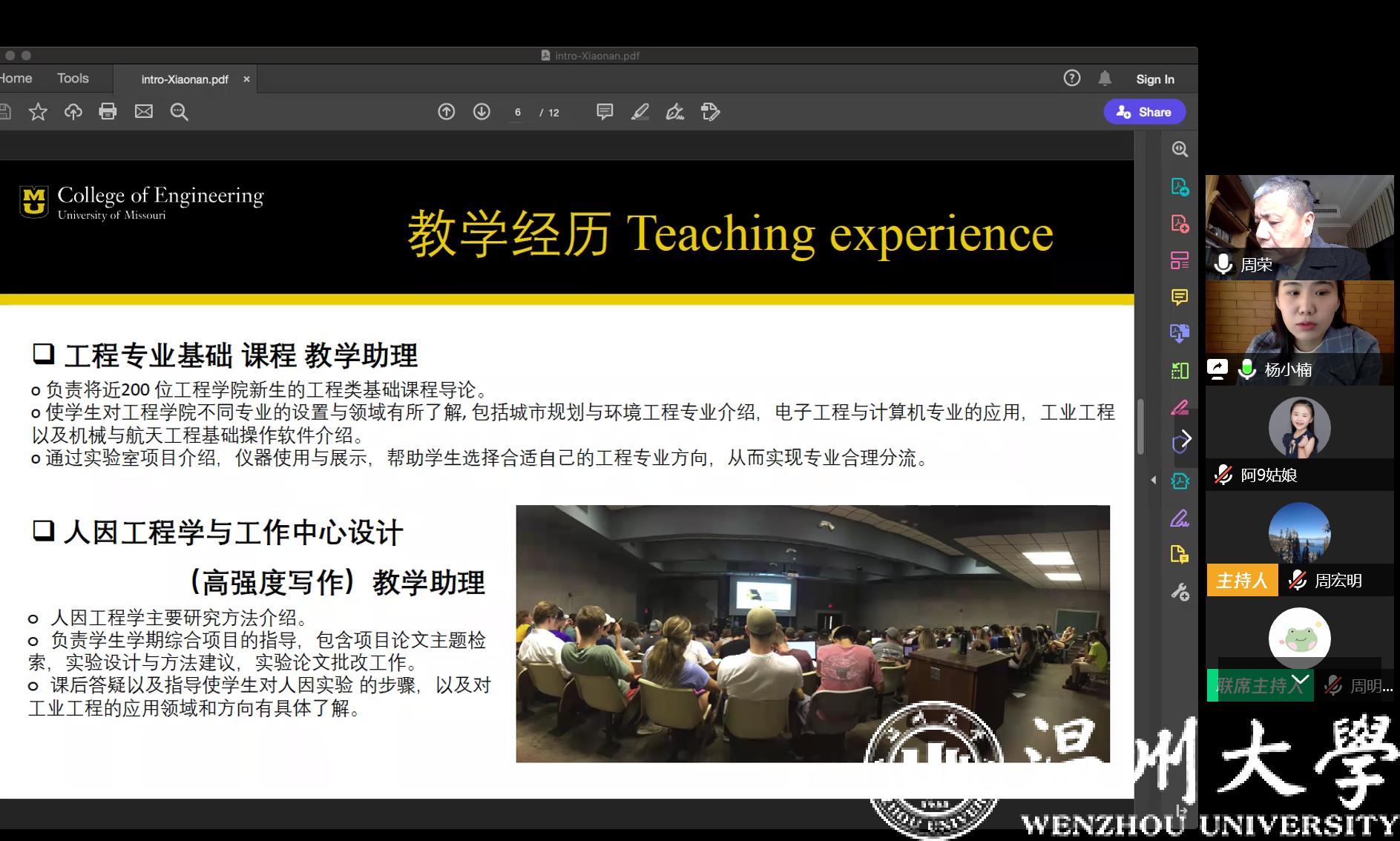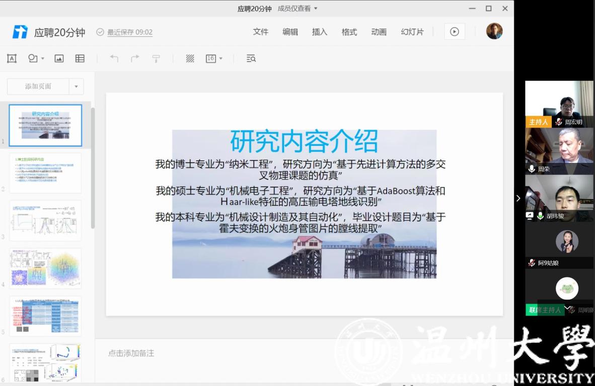 2020年3月13日上午,十大电竞博彩排名 通过腾讯会议平台进行了今年第一批应聘博士的线上面试、试讲工作,这也是疫情防控期间电子竞技博彩 第一次通过互联网开展的线上人才引进工作。面试考核组由电子竞技博彩 院长周宏明、党委书记周荣等领导班子成员及电子竞技博彩 学科带头人、专业负责人等8人组成。对来自浙江大学、北京航空航天大学、美国密苏里大学、英国斯旺西大学等4位人才进行了面试、考察。