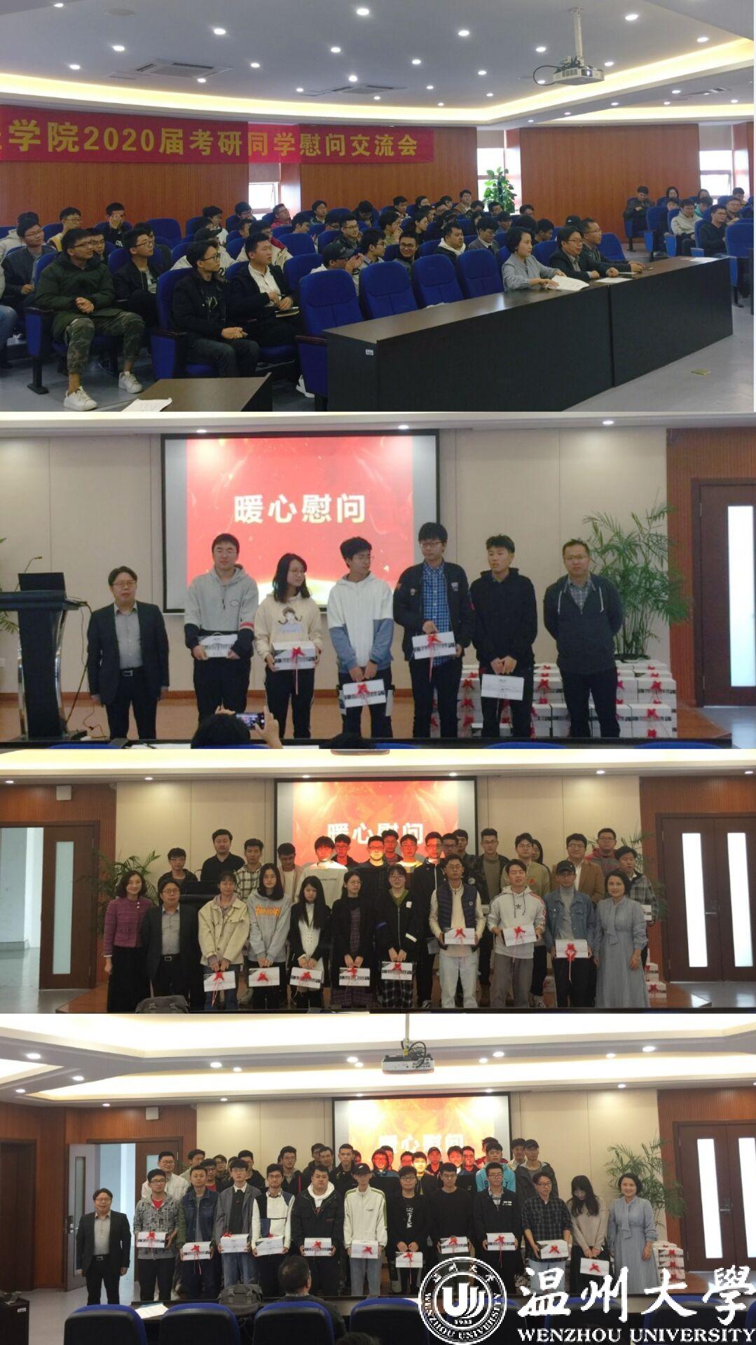 为了鼓励考研同学积极迎考,增强考研信心,舒缓备考压力。十大电竞博彩排名 在2019年11月22日下午14点在电子竞技博彩 6B309报告厅举行2020届考研学生慰问交流会。十大电竞博彩排名 院长周宏明老师,机电工程党委副书记黄玮老师、16级班主任代表陈贤老师、学生科辅导员郑妤老师、胡施施老师以及全体考研同学参加此次活动。