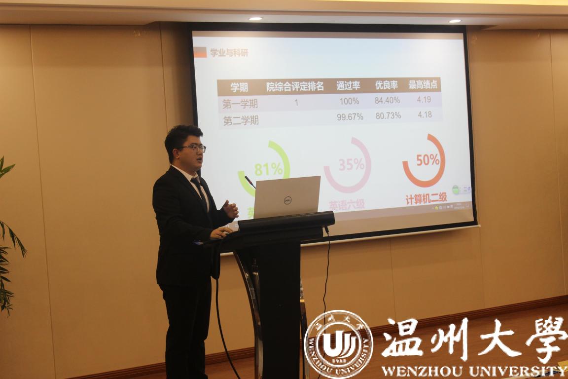 接下来按照年级,各班级代表依次上台进行班级介绍。评比过程中各班级的展示生动活泼、高潮迭起。各班发言人向在场的老师和同学们展示了各班风采,包括班级介绍、学风建设、团建活动、考级考证、科研竞赛和未来展望等几个方面,他们的精彩演讲搏得了在场老师和同学们的热烈掌声。