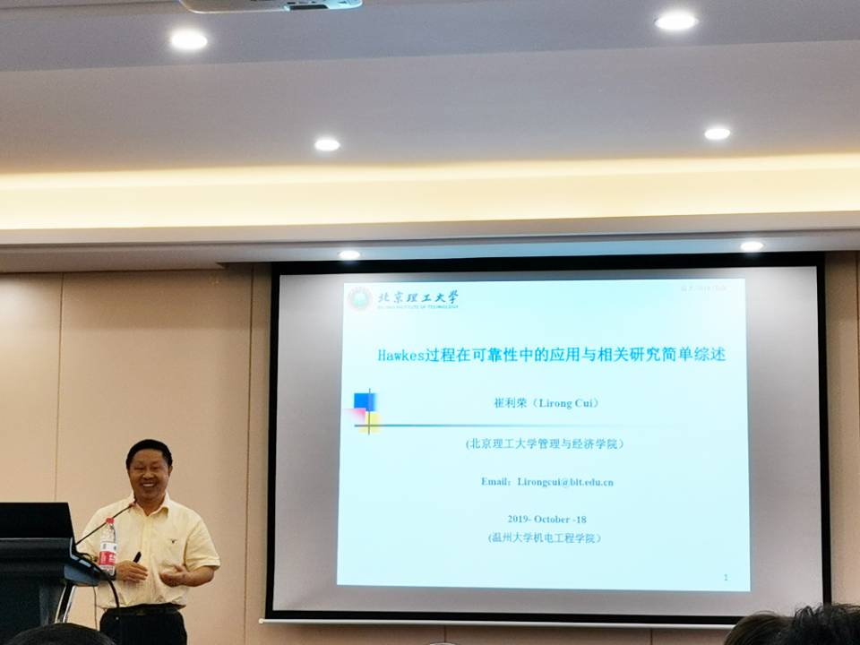 10月18日上午,国家自然基金管理科学专业评审组专家、北京理工大学管理与经济电子竞技博彩 崔利荣教授在电子竞技博彩 6B309学术报告厅为电子竞技博彩 师生做了一场题为“Hawkes过程在可靠性中的应用与相关研究简单综述”的学术讲座。本次讲座由十大电竞博彩排名 院长周宏明主持。