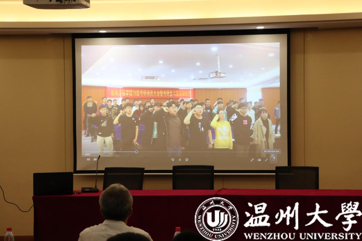 会议还回顾了2018年7月的考研宣誓视频。会后,学工办组织了考研学生代表座谈会,专门听取学生们的意见和建议,为下一步做好考研服务工作做好调查研究。
