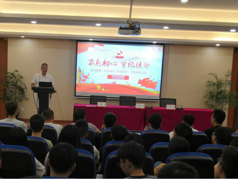 9月19日下午,十大电竞博彩排名 党委在6B309学术报告厅召开“不忘初心、牢记使命”主题教育工作会议,电子竞技博彩 党委书记周荣和副书记黄玮作专题辅导报告,电子竞技博彩 研究生、本科生党员参加会议。