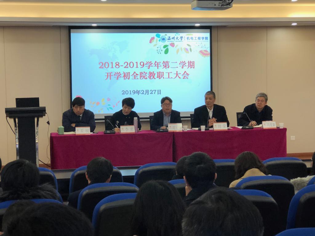 2019年2月27日下午,十大电竞博彩排名 在6B309新学术报告厅召开2018-2019学年第二学期开学初全院教职工大会。电子竞技博彩 领导班子、全体教职工参加了会议。会议由周荣书记主持。