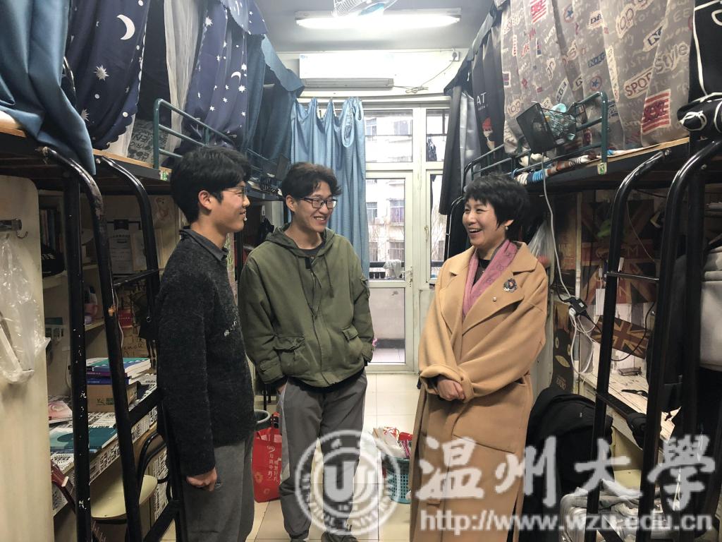 老师们分别走访了大一到大四部分寝室,同学们有的刚刚到校,正在整理物品,有的说说笑笑谈论着各自的寒假生活,有的已经在预习课本内容。老师们的到来让同学们感受到殷殷关怀。老师们与同学们进行积极的交流,仔细询问每位学生的实习情况与学习情况,更是对于毕业生提出的一些问题进行耐心的解释。李密书记叮嘱大家一定要调整好状态,拿出饱满的精气神来迎接新的学期。