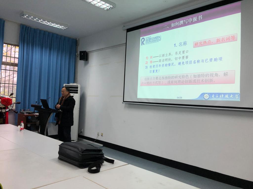 2019年1月9日上午,电子科技大学黄洪钟教授应邀莅临十大电竞博彩排名 为广大师生作了一场精彩的指导国家自然科学基金申报的讲座。报告由十大电竞博彩排名 周宏明院长主持,电子竞技博彩 教师和部分研究生参加了讲座。