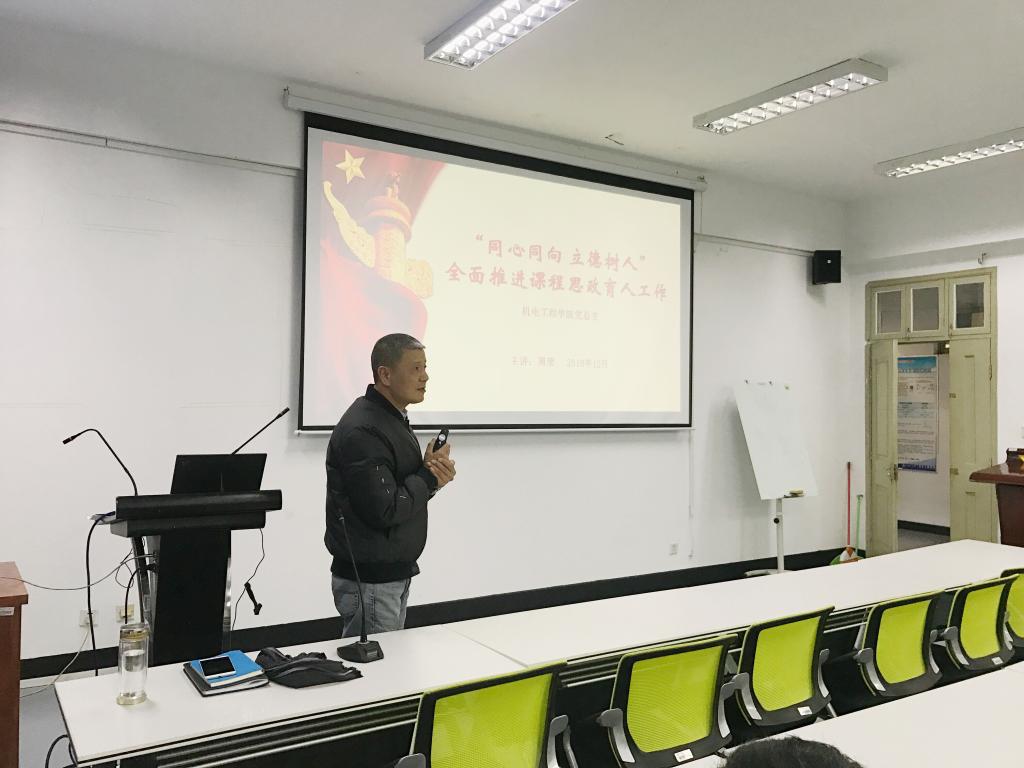 最后,周荣书记为全体教职工作《“同心同向立德树人”全面推进课程思政育人工作》的思政报告。他分析了课程思政和思政课程的区别,并强调课程思政“润物细无声”的重要性。他指出课程思政包括很多元素,如道路自信、文化自信、制度自信、马克思主义元素、工匠精神、中国创造等。在实施课程思政思路方面,周荣书记指出要做好课程思政体系顶层设计、齐心协力推进教学改革、并激励课程思政改革。