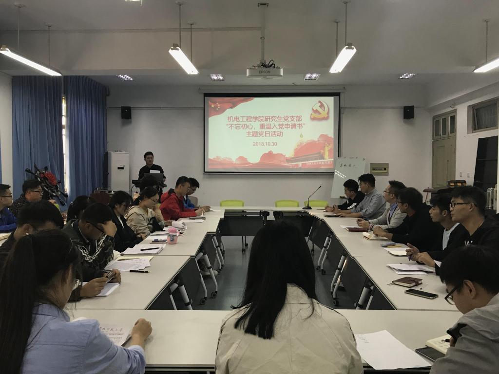 为深入学习贯彻党的十九大精神,不断提高支部党员的政治理论水平,增强党性修养。10月30日下午,十大电竞博彩排名 研究生院党支部在6B201开展“不忘初心,重温入党申请书”主题党日活动,活动由研究生党支部副书记刘焜主持,全体研究生党员和入党积极分子参加了此次活动。