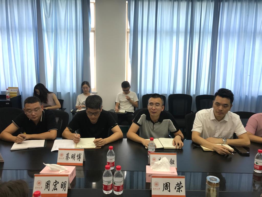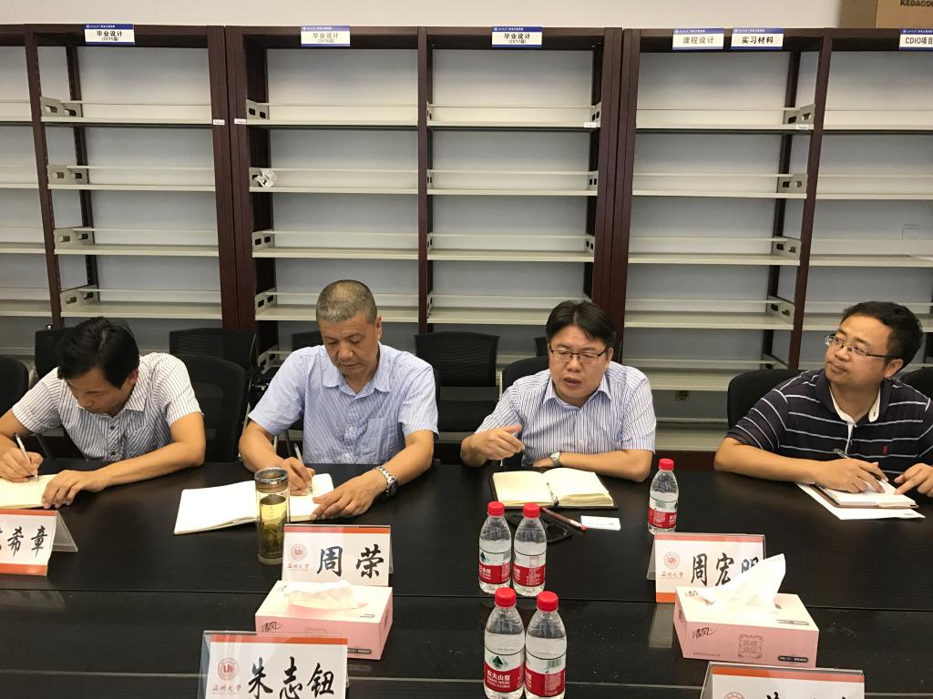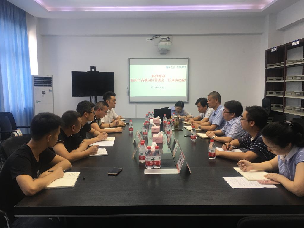 2018年8月13日下午,由高教园区管理办公室副主任蔡明博、副主任朱志钮、校地合作科负责人许增淼组成的调研组来到电子竞技博彩 开展调研对接工作。电子竞技博彩 院长周宏明、党总支书记周荣学术带头人陈希章教授以及办公室、机械电子系负责人参加了交流会。