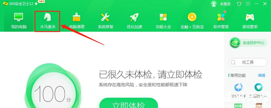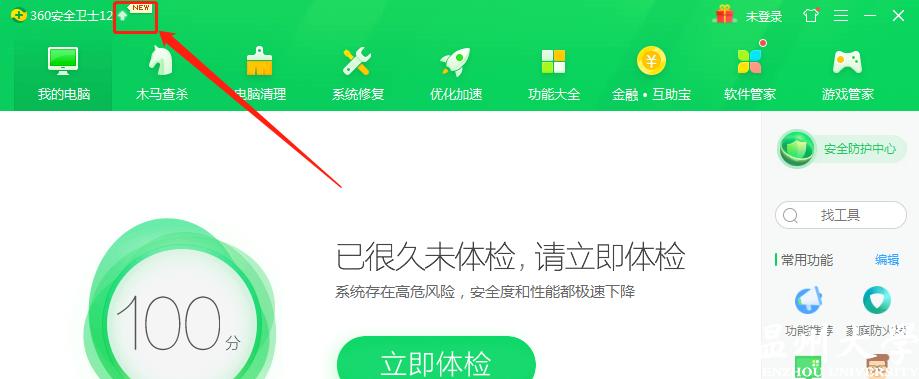 第一步 :安装/打开360安全卫士,点击左上角向上箭头,并升级到最新版本。